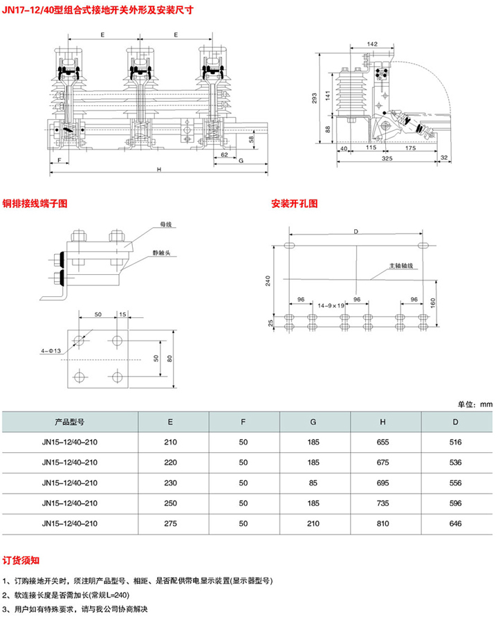 JN17-12/40(原型號JN15-12/40為了同市場上區別我公司改為JN17-12/40)型戶內高壓接地開關是我公司根據ES1型接地開關原型設計開發的具有國際先進水平的新型接地開關。結構形式為組合式,其性能符合GB1985-89《交流高壓隔離開關和接地開關》及IEC129的要求,適用于戶內3~10kV三相交流50(60)Hz的電力系統中;它具有一定的關合能力以保護開關設備內其它電氣設備不受損壞,可與各種高壓開關柜配套使用,作為高壓電器設備檢修時的接地保護。
